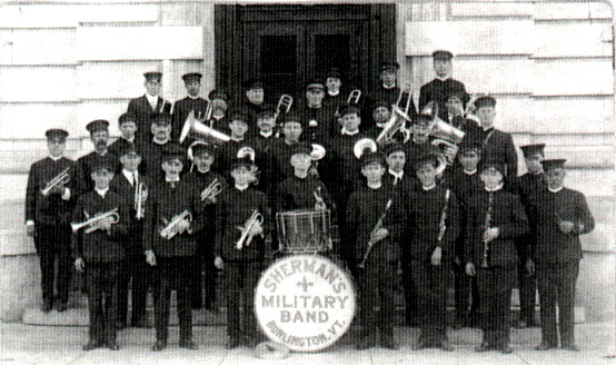 In 1878 he organized, with much coaxing from the citizens of Burlington, Sherman's Military Band, made up of musicians from the dormant Queen City Band. This band came to be well known all over the East as one of the finest touring Military Bands.